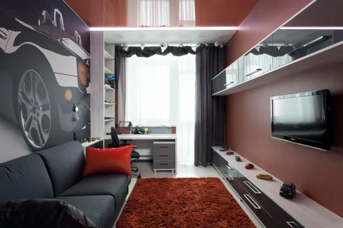 - смелую асимметрию (особенно актуально для зала с балконной дверью).