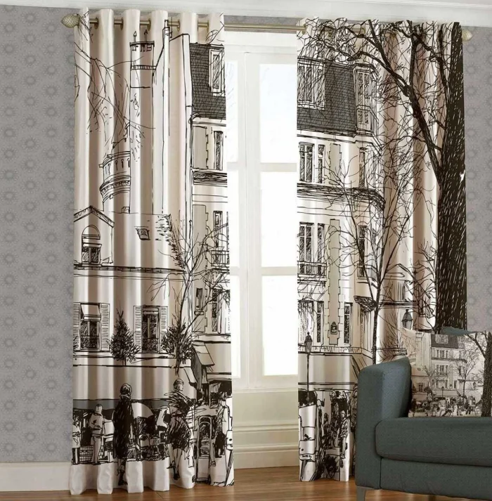 - Купить готовый двухслойный блэкаут и пришить к нему с изнанки декоративное полотно с рисунком.