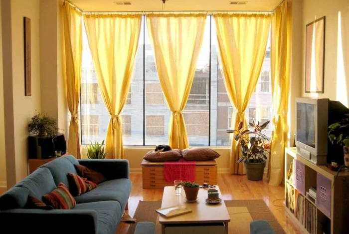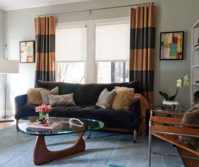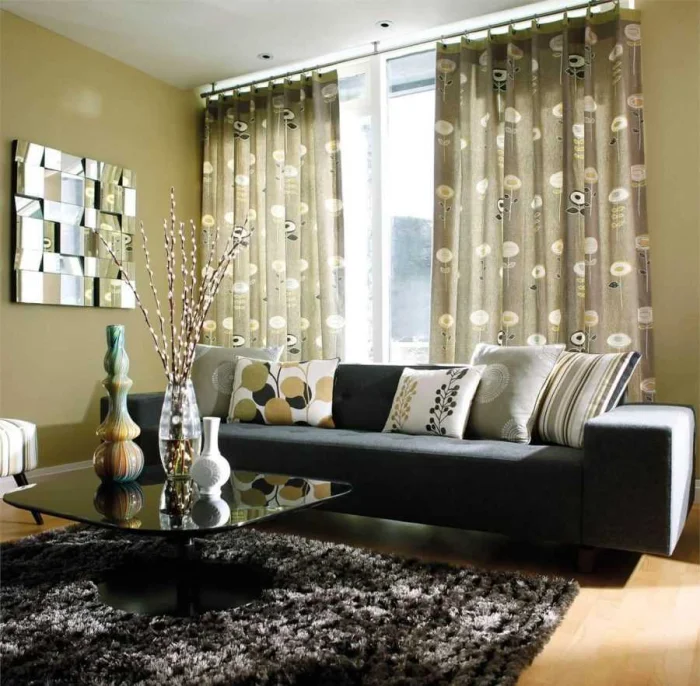 - Дружба с мебелью. Комбинируйте оттенок штор с цветом мебели или её деталей (например, подушек).