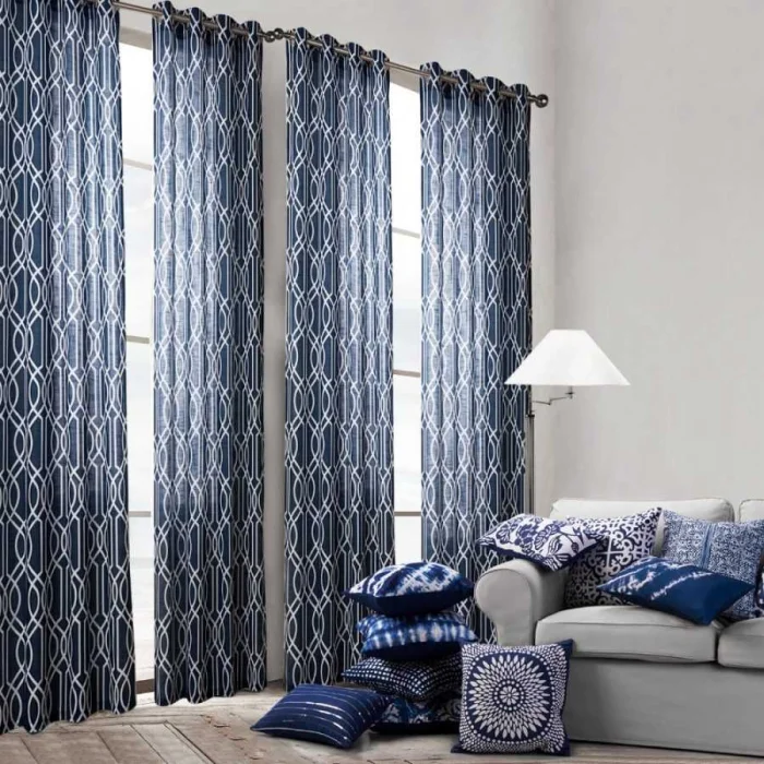 Особой популярностью сейчас пользуются шторы с рисунком: в цветочек, в полоску, с геометрическим принтом. «Геометрия» блестяще работает в интерьерах с однотонными стенами.