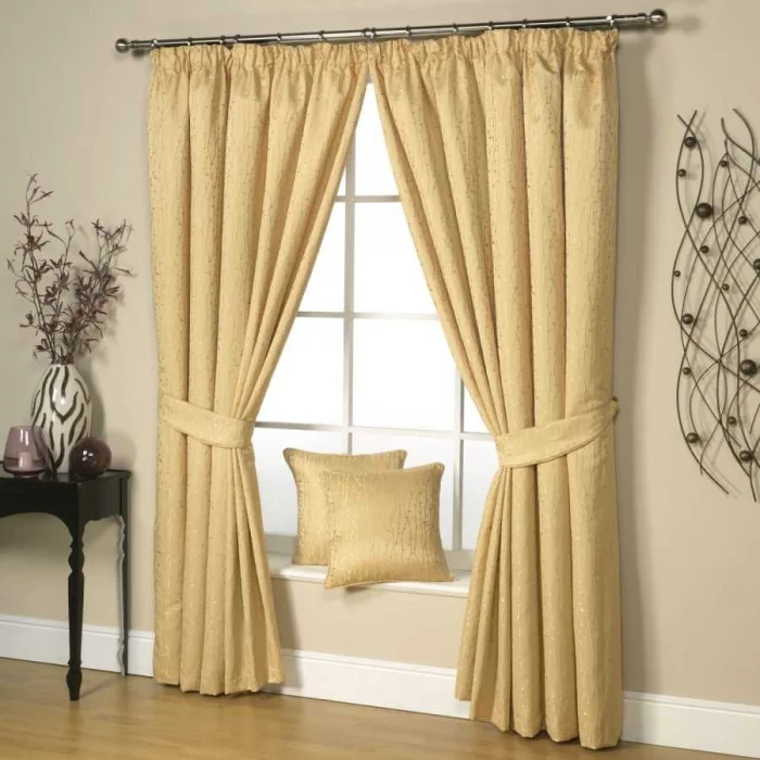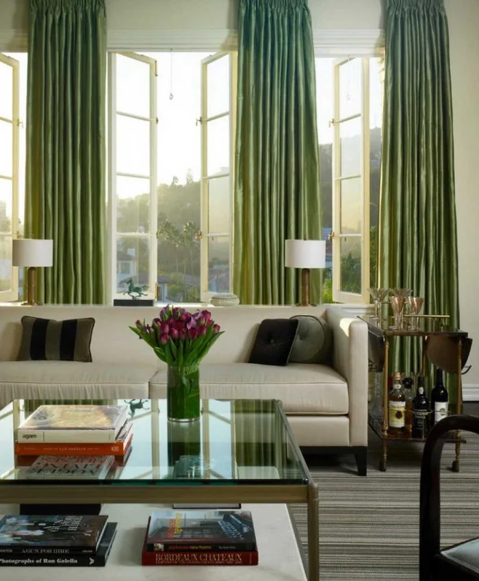 - Северное окно, мало света. Ваши союзники — тонкие ткани ярких, тёплых оттенков: изумруд, золото, насыщенный беж. Они визуально согреют комнату.