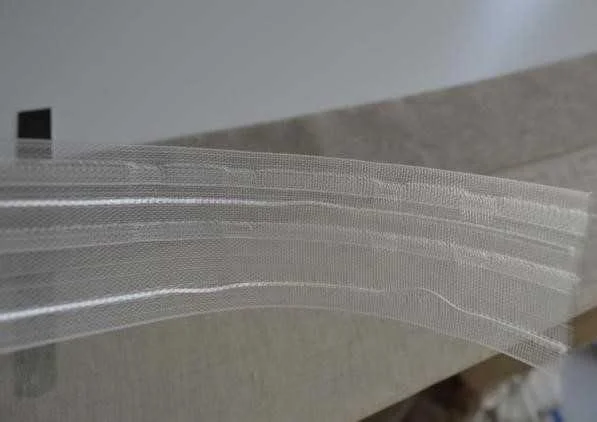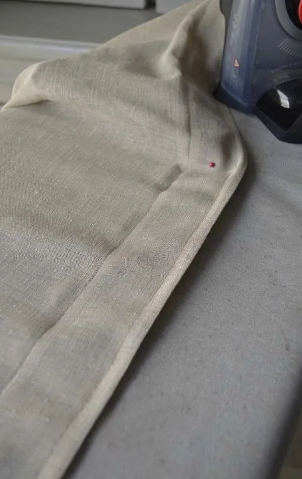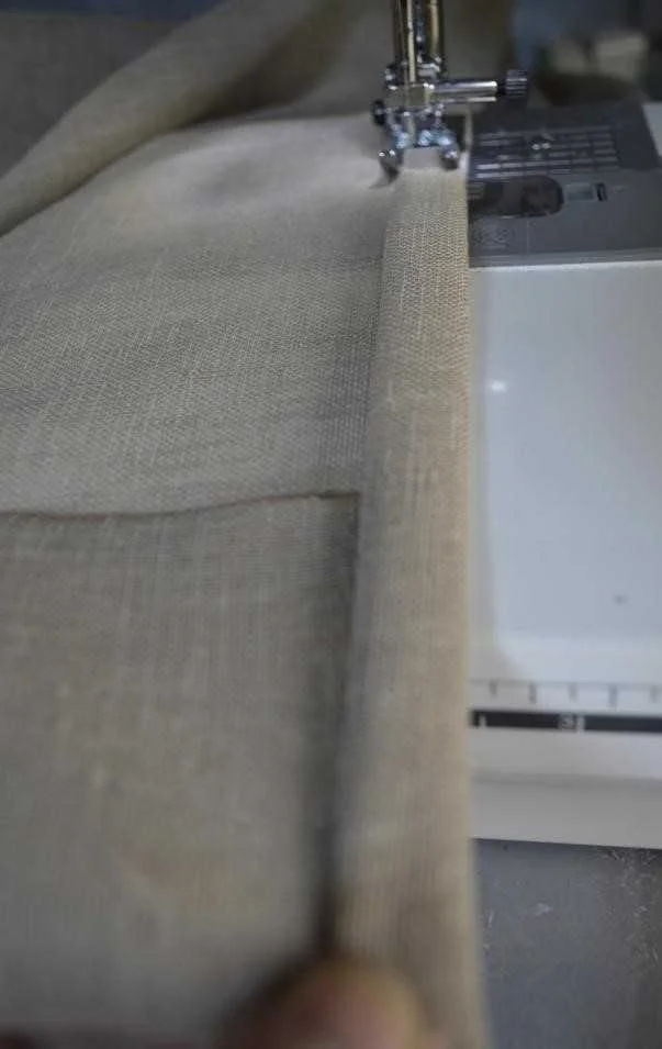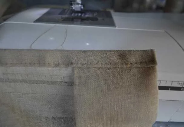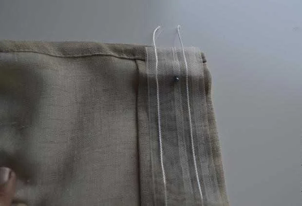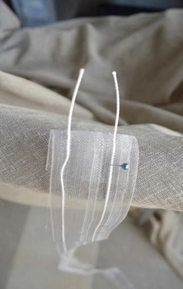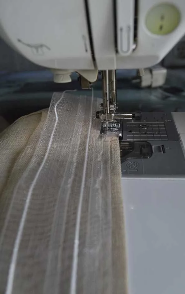 - Верхний край удобно обрабатывать, сразу пришивая шторную ленту. Это и быстро, и красиво — верхний шов окажется внутри.