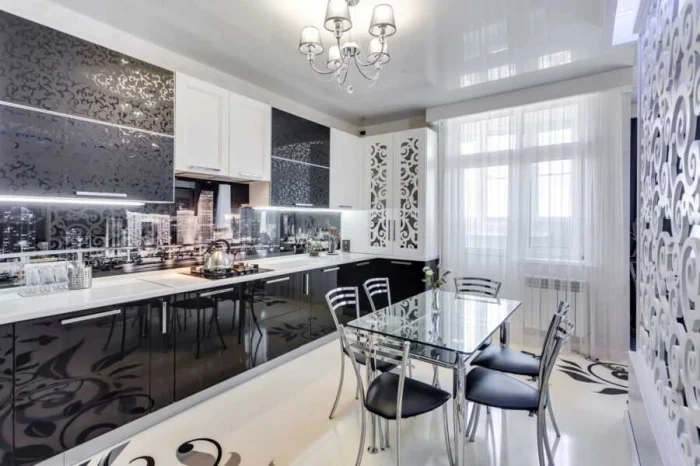 - Маленькая кухня. Забудьте о крупном, агрессивном рисунке. Он «дробит» пространство и делает его ещё меньше.