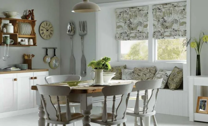 Кантри — стиль более грубоватый и разнообразный. Изучите, какой именно национальный колорит вы хотите получить. Но основа всегда одна: натуральные материалы (лён, хлопок) и цвета природы.