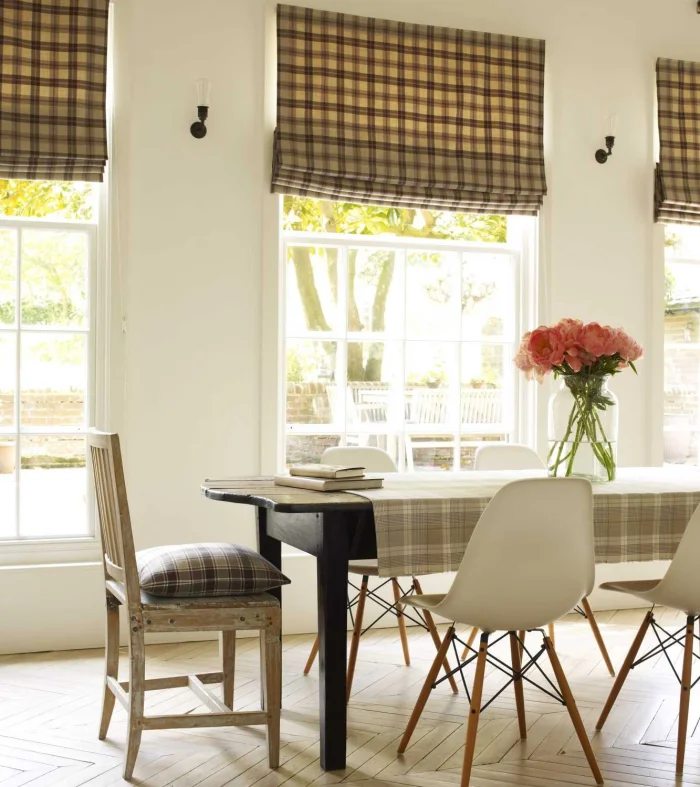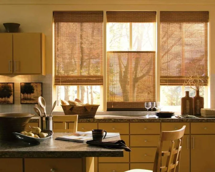 Лаконичность — ваше всё. А учитывая, что большинство кухонь не могут похвастаться просторами, на помощь приходят умные компактные модели: рулонные и римские шторы, жалюзи. Они занимают только площадь окна, отлично защищают от солнца и посторонних глаз.