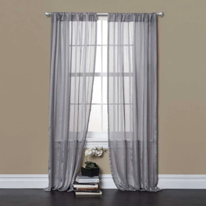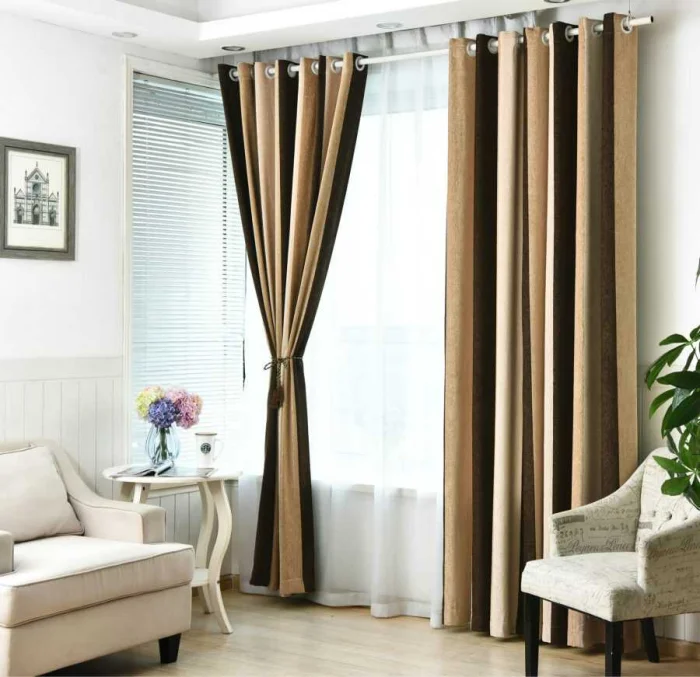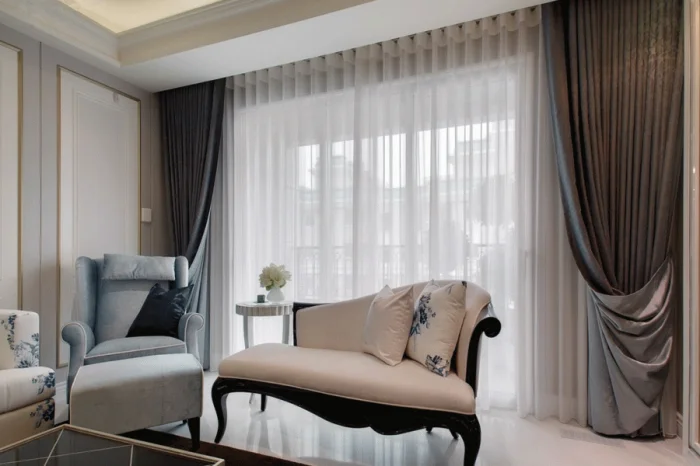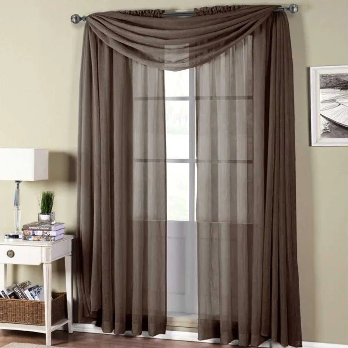 Современный подход часто строится на контрасте: само полотно — предельно простое, однотонное, а вся изюминка — в деталях. Необычные подхваты, стильные люверсы, декоративные подвесы становятся главными героями.