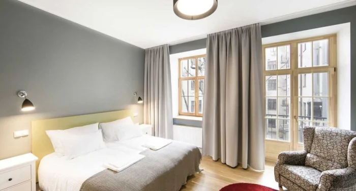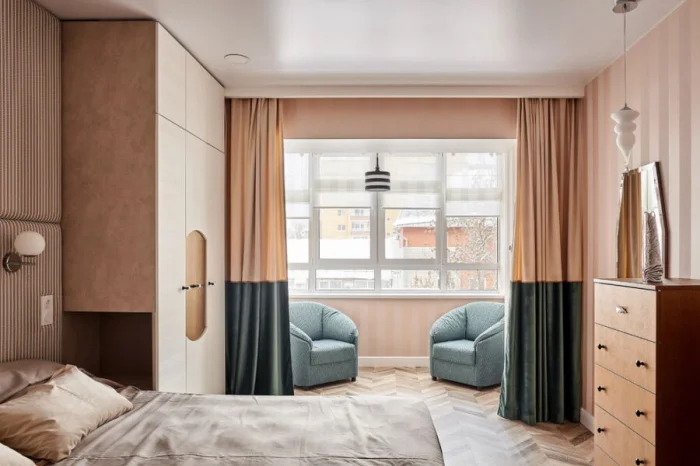 Шторы — ваш главный союзник в зонировании. Плотные портьеры на балконной части создадут уединение, лёгкий тюль — оставит ощущение простора. В маленькой спальне 12 кв.м. этот приём просто спасение.