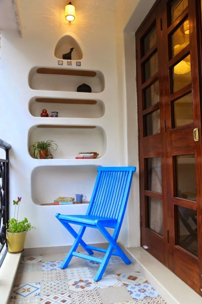 Если стены нет — на помощь приходит текстиль. Плотная штора или лёгкий тюль мгновенно создадут уединённую зону. Представьте: за полупрозрачной завесой угадывается уютный «шатёр» на балконе. Романтика!