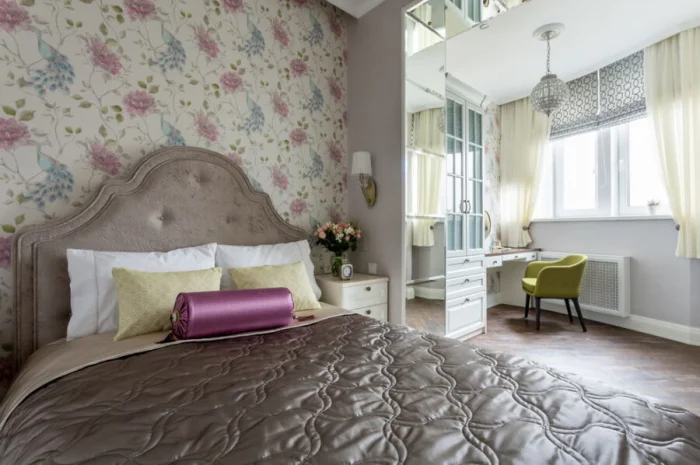 - Прованс/Классика. Если балкон — прямое продолжение спальни. Пастельные тона, цветочные принты, уют.
