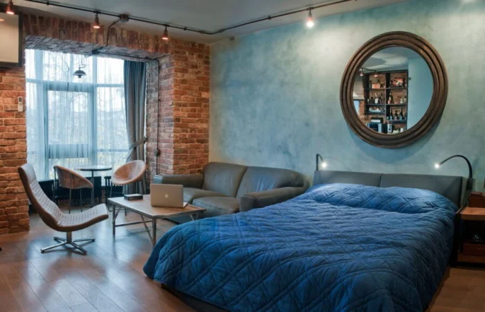 - Лофт. Грубоватая отделка, кирпич, металл — для лаунж-зоны или мини-бара.