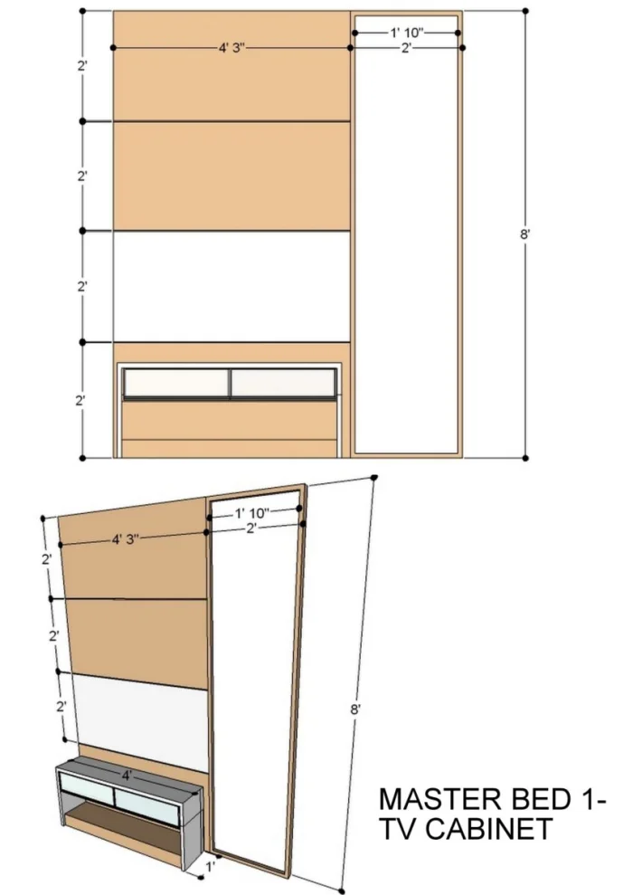 Иногда экран монтируют почти под потолком на поворотном или выдвижном кронштейне. В таком случае высота телевизора напротив кровати составит примерно 1,5–2 метра от пола.