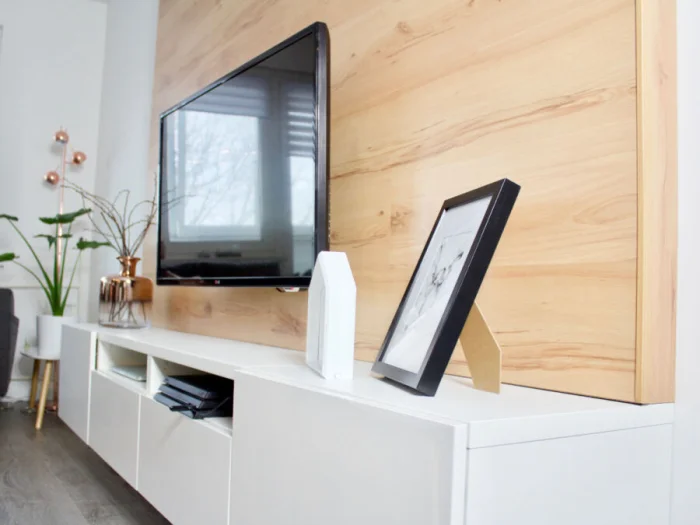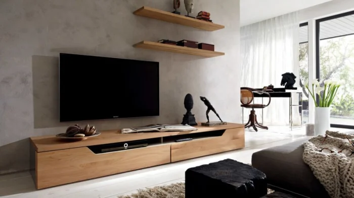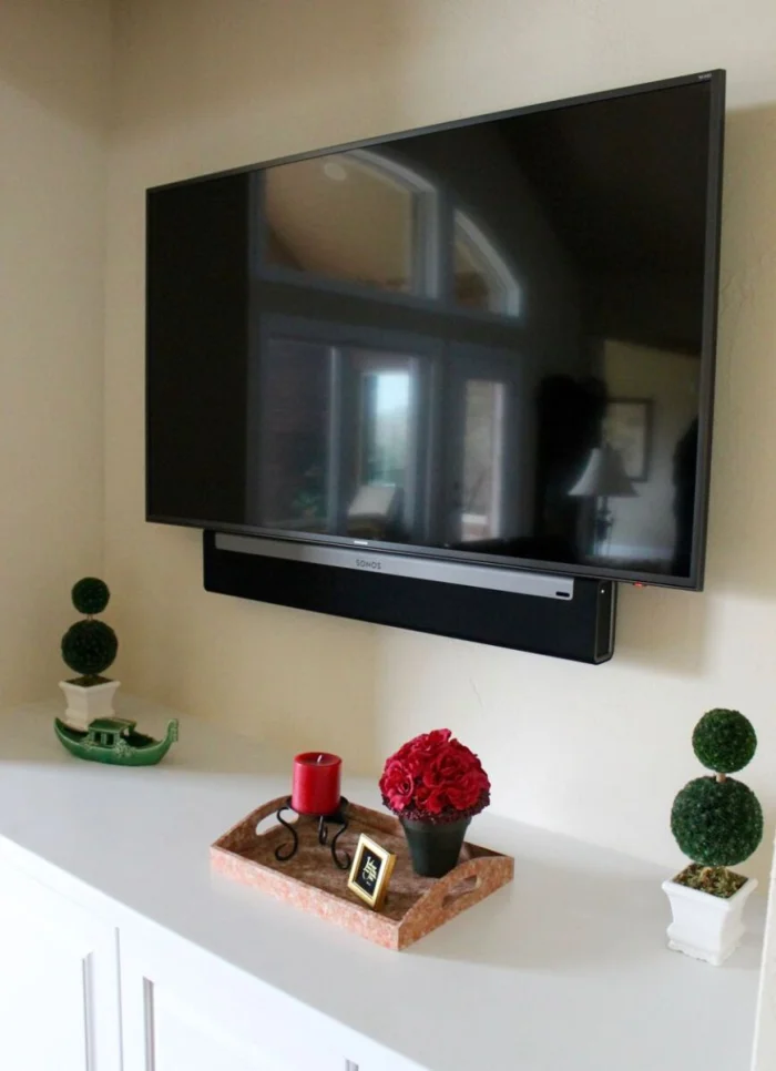 - Дает возможность максимально близко придвинуть телевизор к стене. Он буквально сливается с поверхностью, как картина.