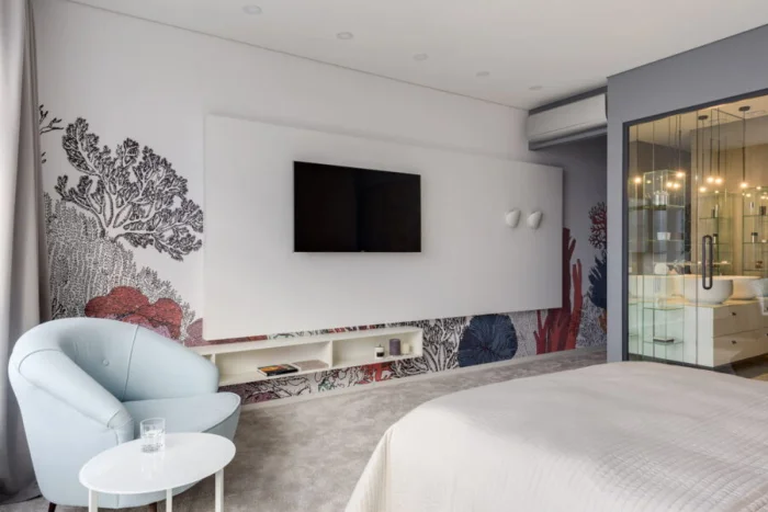 Телевизор в спальне — уже давно не роскошь, а почти что предмет гигиены сна. Ну правда, как иногда хочется полежать и посмотреть что-нибудь перед сном! Современные плоские панели мы обычно вешаем на стену — так и пространство экономится, и смотреть из кровати куда удобнее. Но вот вопрос: на какой именно высоте?
