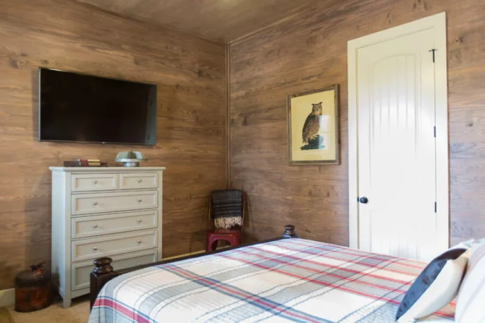 Подойдут легкие предметы: небольшие картины, фотографии, светодиодная подсветка или декоративное панно. А вот тяжелые полки, массивные рога или другая техника — не лучшая идея. Безопасность прежде всего.