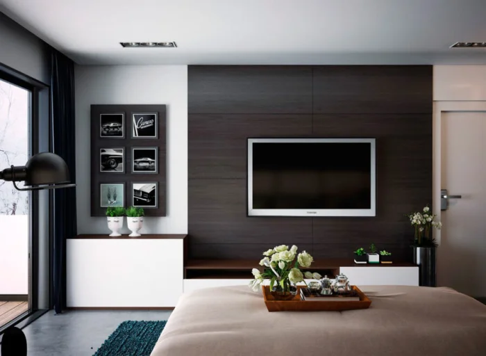 Фотогалерея: телевизор в спальне — лучшие примеры