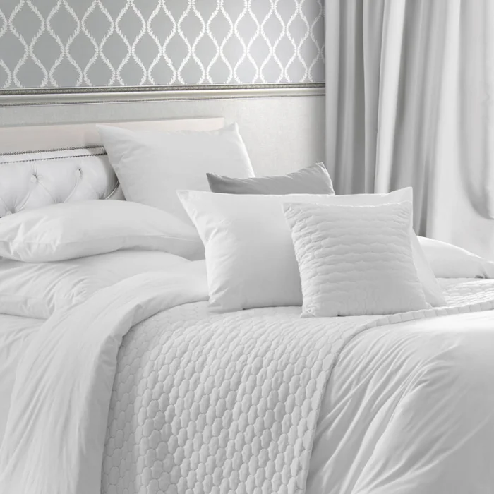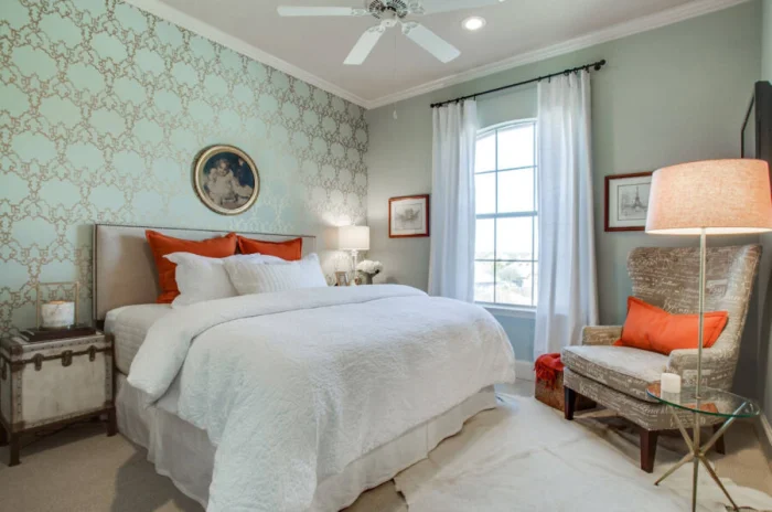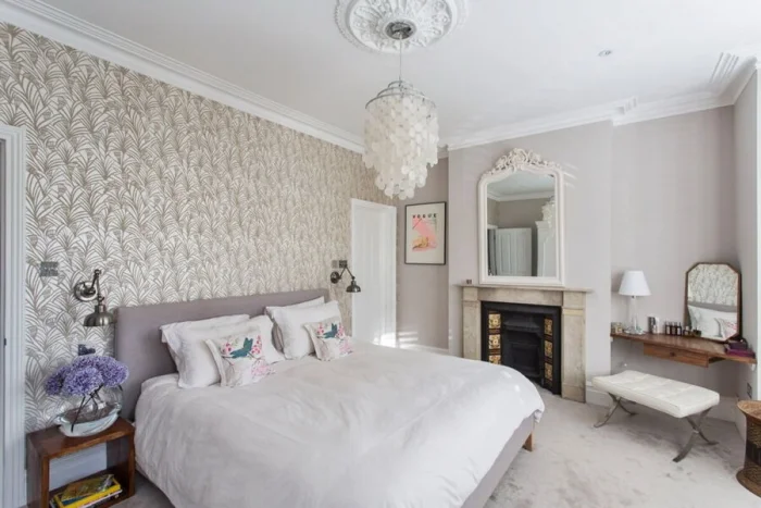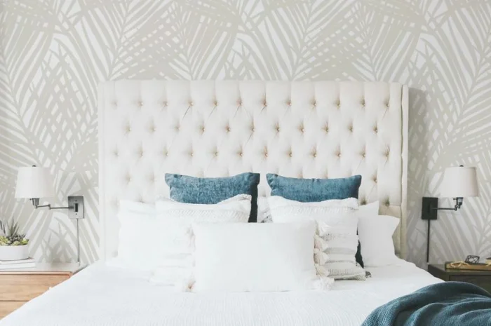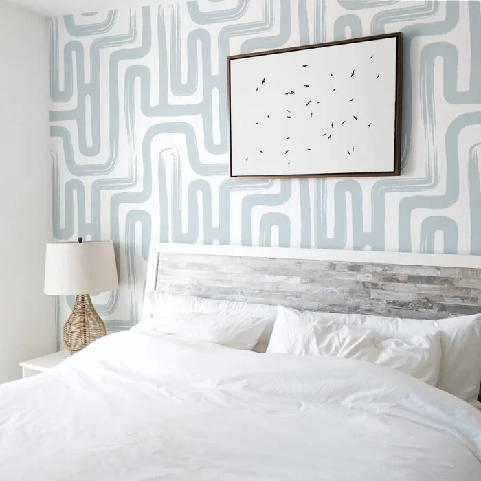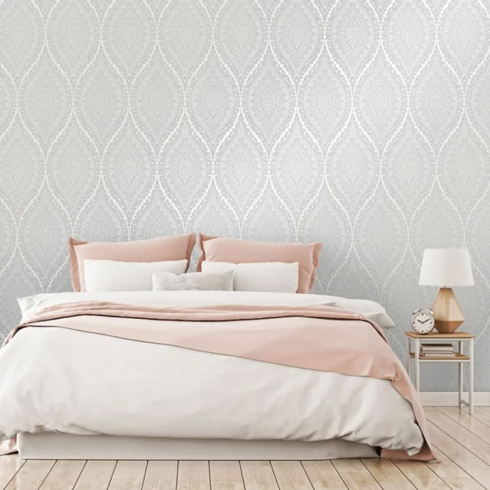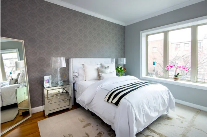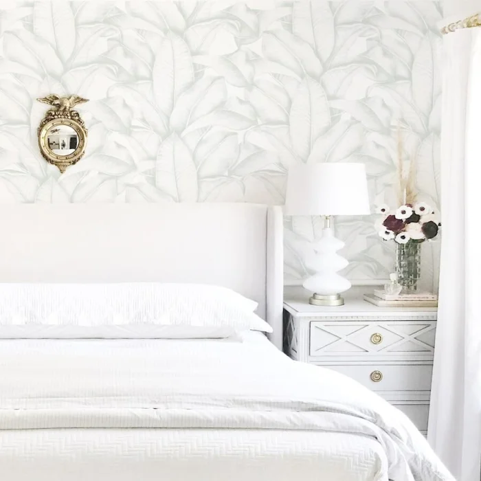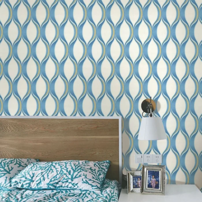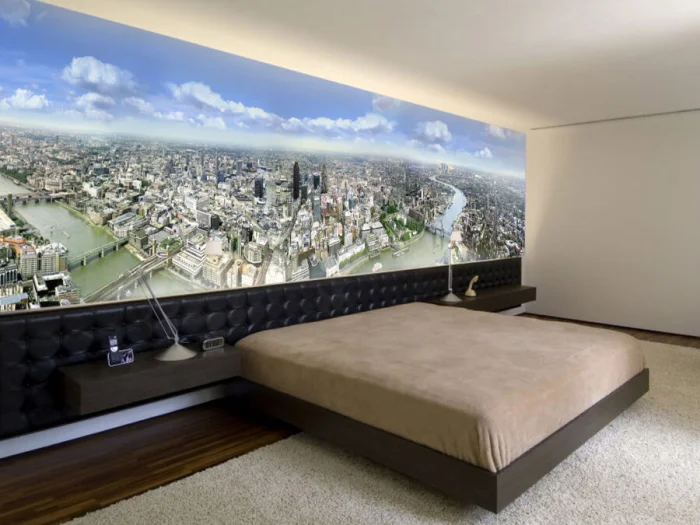 Глянцевая поверхность таких обоев будет отражать свет, усиливая ощущение свежести и простора. Лёгкий холодок в интерьере — вот что нужно для комфортного сна в жаркую ночь.