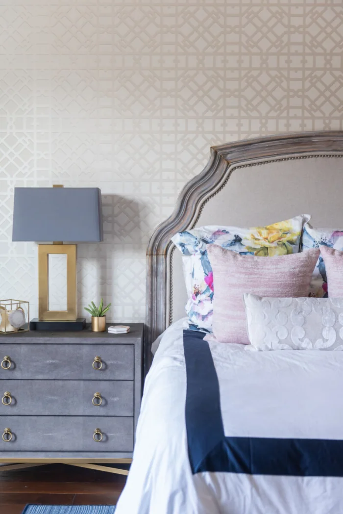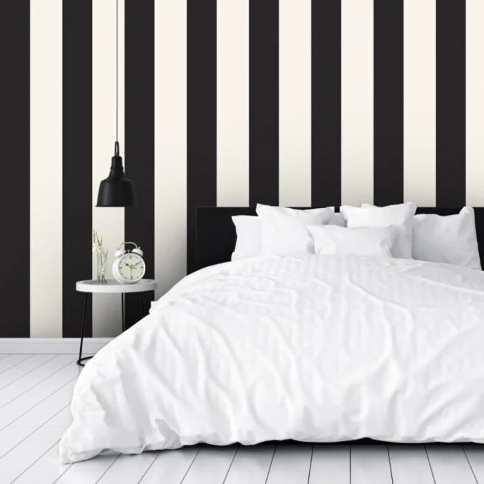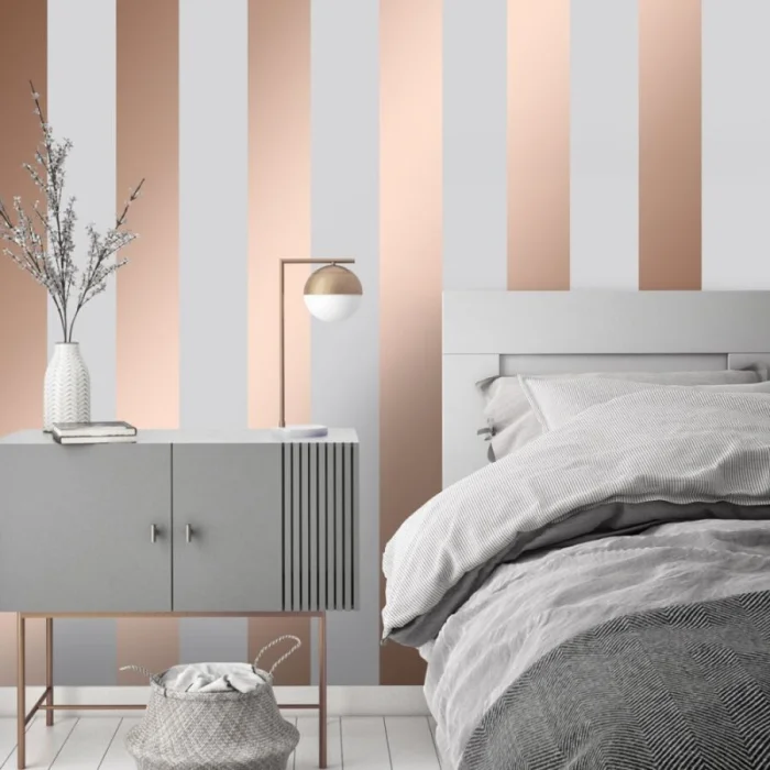 Комбинировать можно вертикальными или горизонтальными полосами. Это отличный способ зонировать пространство или создать графичное панно. В спальне акценты должны быть деликатными: сочетайте нейтральный фон с одним, но выразительным рисунком или цветом.