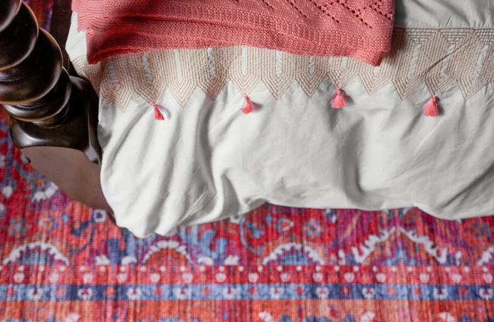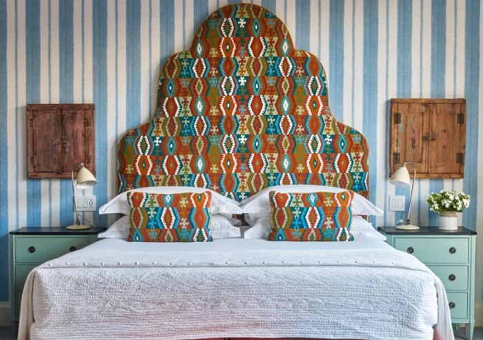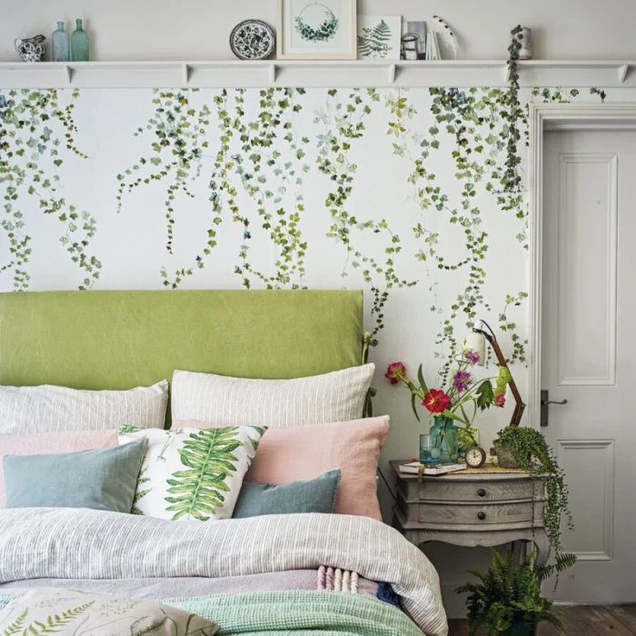 Здесь можно дать волю фантазии! В моде глубокие, насыщенные цвета: тёмно-синий, изумрудный, тёплый терракот. Используйте их для создания акцента в зоне изголовья.