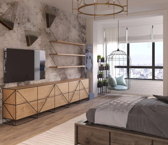 Лофт, с его культом неотделанных стен, легко создать с помощью фотообоев под кирпич или бетон. Главное правило — только одна акцентная стена. Остальные должны быть светлыми, чтобы пространство не «давило».