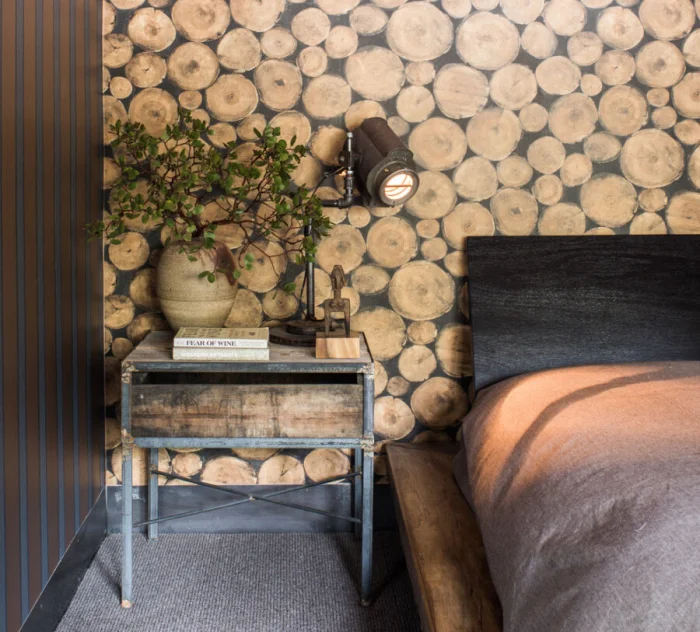 Хотите сделать комнату камернее и уютнее? Попробуйте «опустить» потолок, оклеив его тем же материалом, что и акцентную стену. Это создаст эффект кокона.
