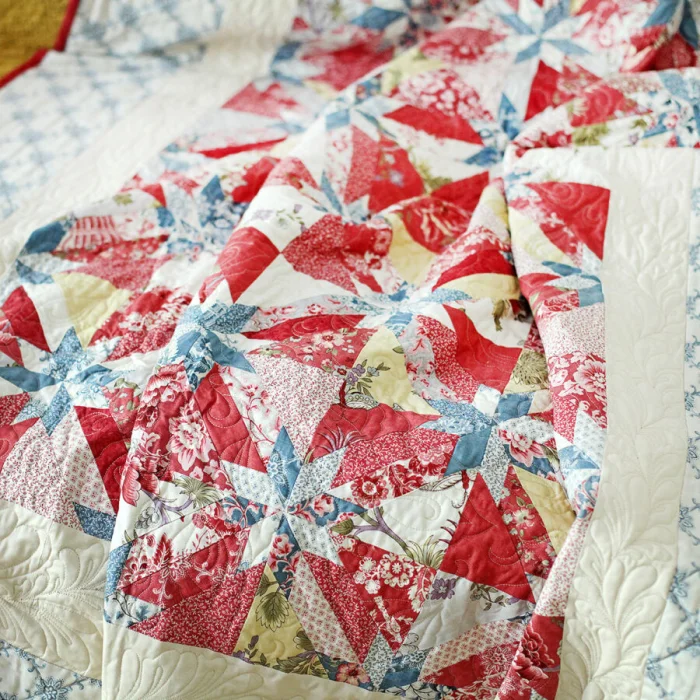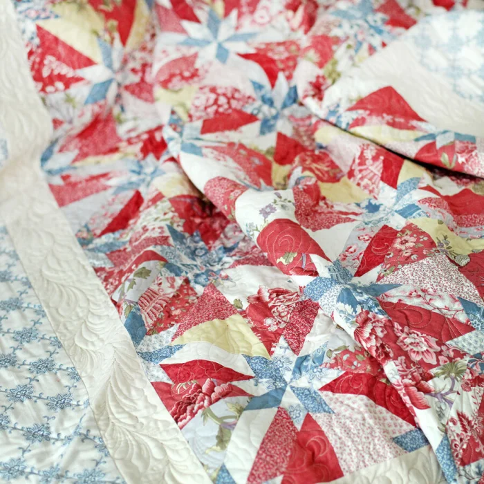 - Пэчворк. Лоскутное шитьё — это искусство. Разноцветные квадраты, треугольники, полосы складываются в уникальный рисунок. Трудоёмко, но результат того стоит: такое покрывало хранит тепло рук и становится семейной реликвией.