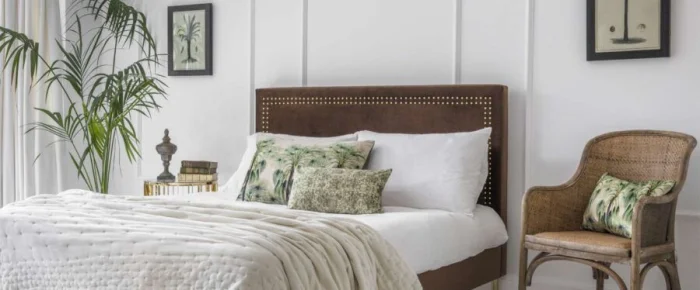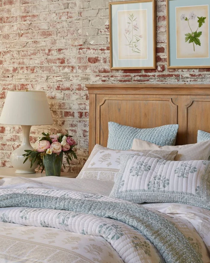 Повторить цвет или узор акцентной стены в текстиле на кровати — гениальный по простоте приём. Он связывает пространство воедино, создавая цельный и продуманный образ.