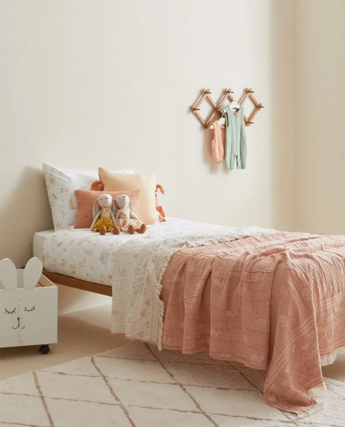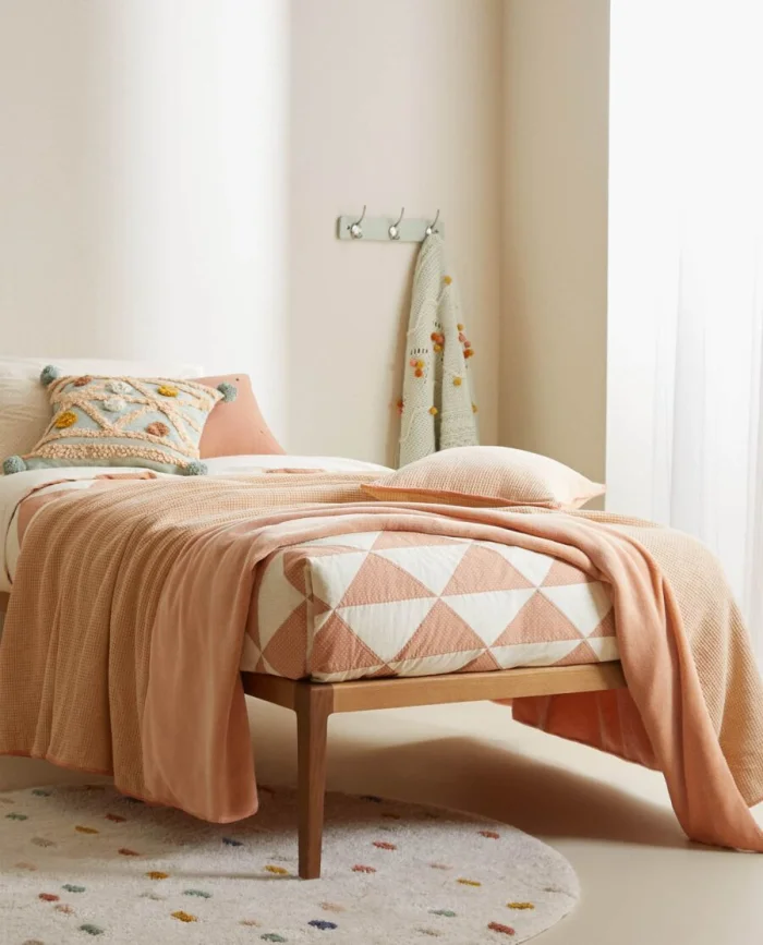 А вот в просторной спальне или детской можно разгуляться! Яркое покрывало с весёлым принтом станет центром композиции.