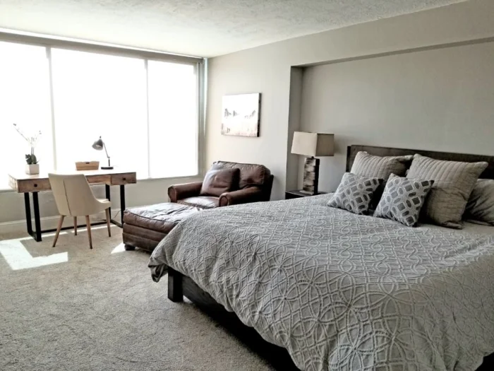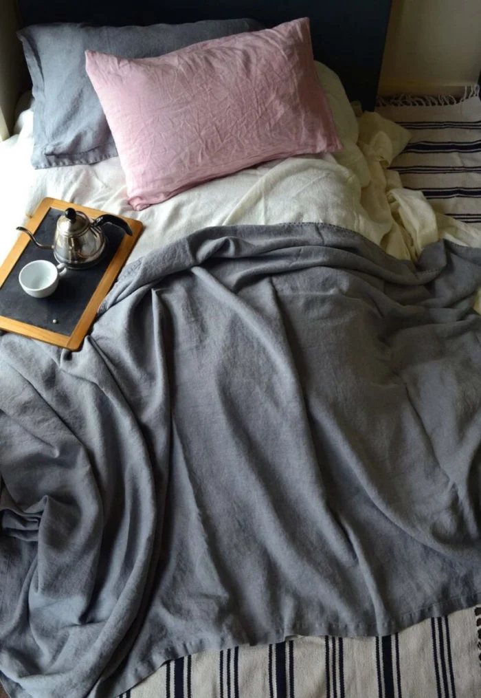 Это высший пилотаж в оформлении спальни. Представьте: первый слой — длинное покрывало, закрывающее ножки кровати. Второй — основное, покороче. А сверху — декоративный плед или узкая дорожка контрастного цвета.