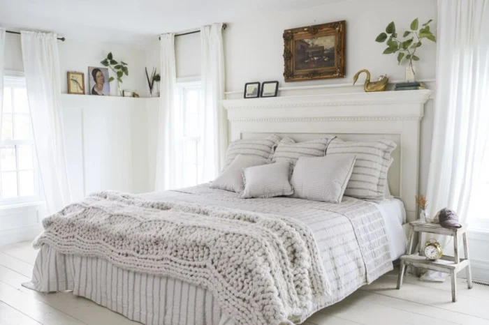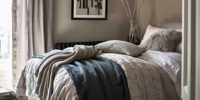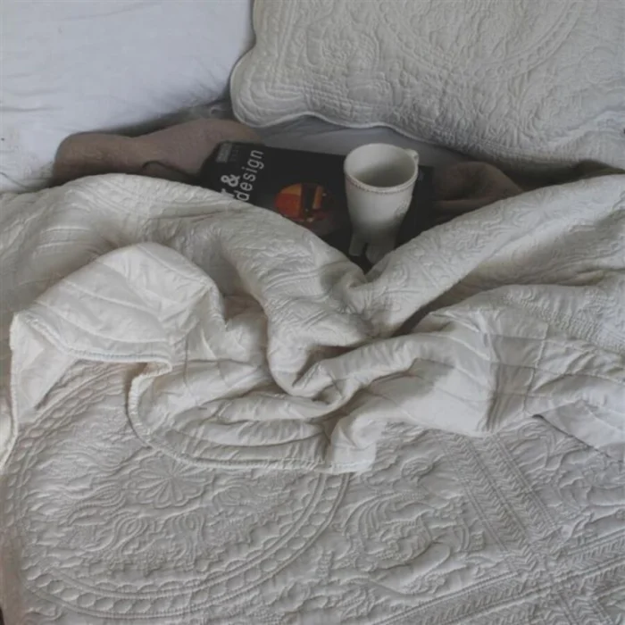 - Скандинавский стиль. Шерстяные или стёганые покрывала светлых, природных тонов. Акцент на простоту, натуральность и фактуру.