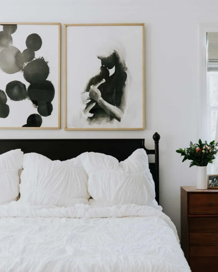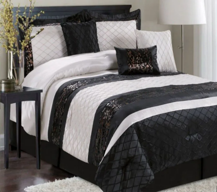Оживляет любое пространство, наполняет его светом и воздухом. Белое покрывало в дуэте с чёрными акцентами создаёт динамичный, графичный интерьер.