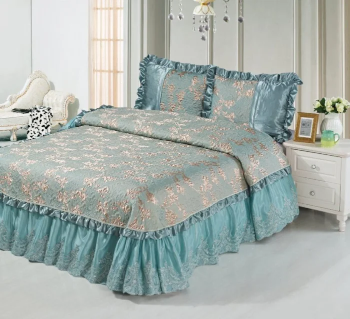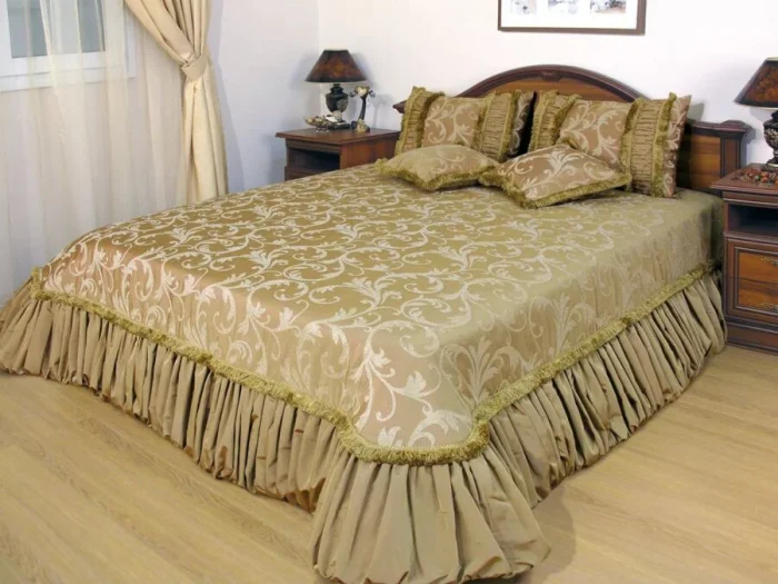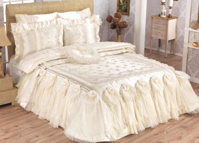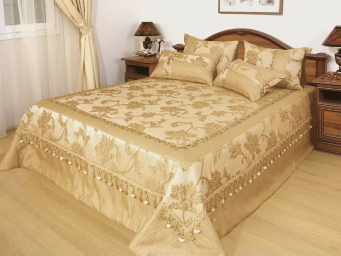 Хотите безупречно элегантный вид? Обратите внимание на покрывала из атласа или шёлка. Их гладкая, переливающаяся поверхность выглядит дорого и стильно, идеально подходит для классических и современных интерьеров.