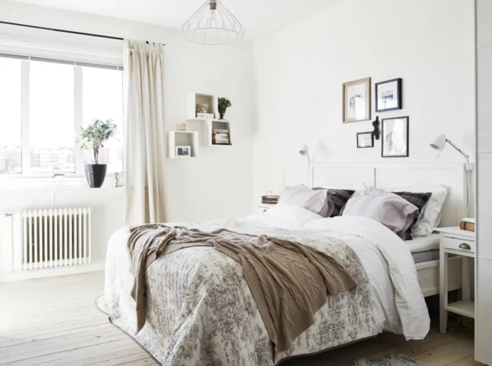 - Белое. Универсальный холст. Не хотите заморачиваться с сочетаниями? Выбирайте белое. Чтобы оно не выглядело скучно, добавьте фактуры: складки, красивые зажимы, контрастные декоративные подушки.