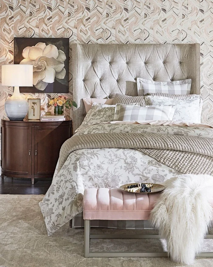 К голубым стенам подойдёт бирюзовый или мятный текстиль. К бежевым — кремовый, карамельный или молочно-кофейный. Но цвет — это только полдела. Решающий фактор — стиль вашей спальни. И вот тут начинается самое интересное.