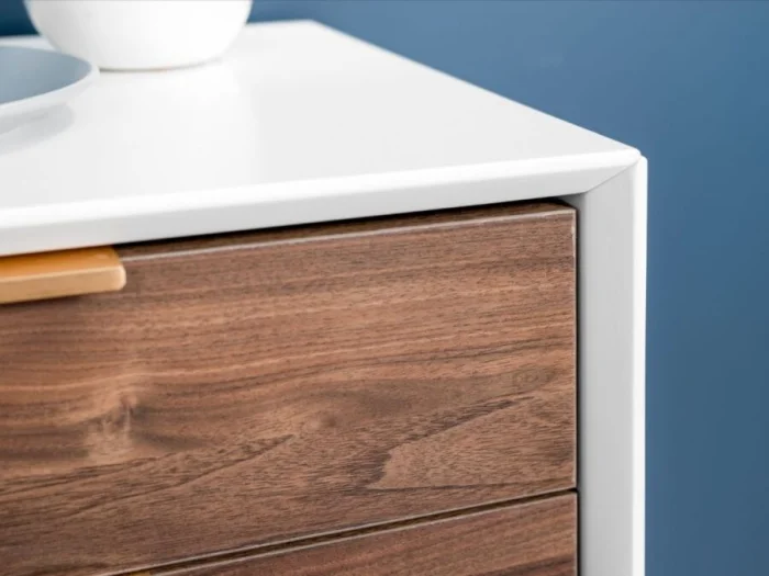 Классика — две симметричные тумбы. Но современный подход более гибкий. Можно поставить одну, но более выразительную. Или даже заменить тумбу на узкую консоль или полку. Главное — соблюдать стилистику: чёткие линии, никакого лишнего декора.