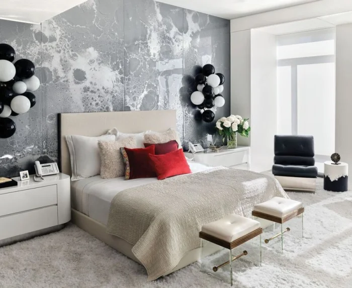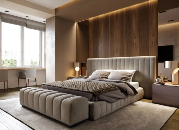 Если площадь позволяет, добавьте уютное кресло с торшером для чтения или компактный туалетный столик. Но помните о чувстве меры — захламлённость убивает современную эстетику.