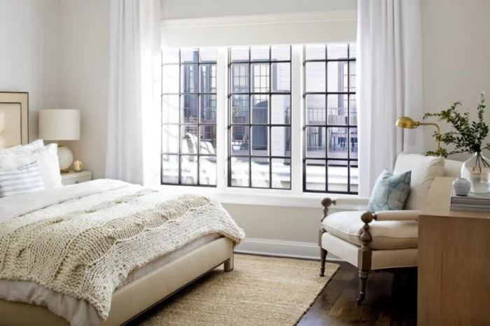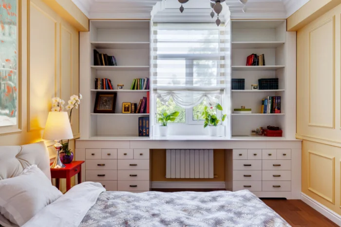 Белая мебель — спасение для маленькой спальни. Она буквально растворяется в пространстве.