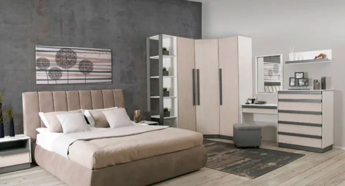 Если же берёте готовый комплект, убедитесь, что он пропорционален площади спальни и не создаёт эффекта захламлённости.