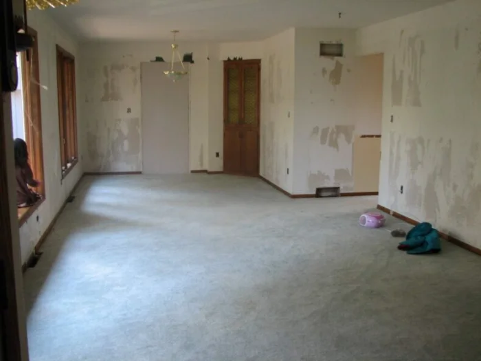 Стена должна быть чистой, как операционный стол. Удаляем все: пыль, грязь, жирные пятна, остатки старых слабо держащихся обоев и краски. Используем пылесос, щетки, шпатель. Жир и копоть смываем растворителем или щелочным моющим средством.