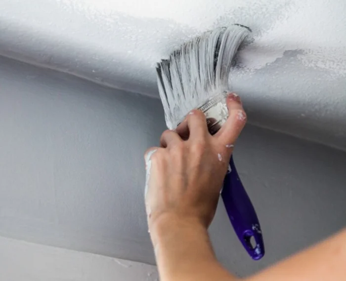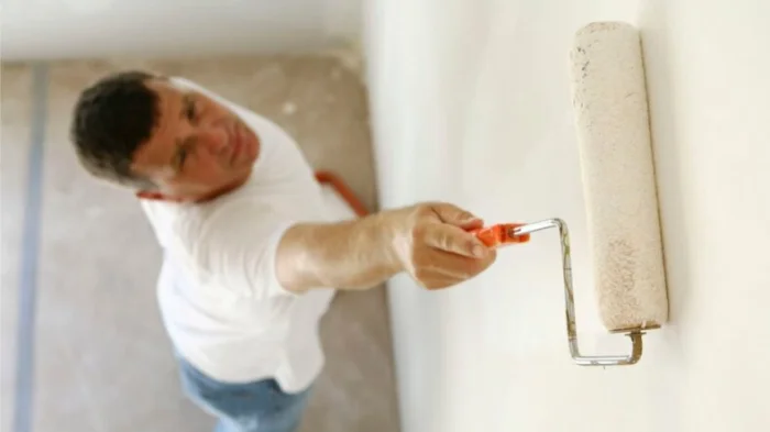 - Шаг 2: Выбор «оружия». Для стен и потолков идеален валик со средним ворсом. Кистью (шириной 5-10 см) проходим углы и места у плинтусов/багетов. Распылитель — для профессионалов и больших площадей.