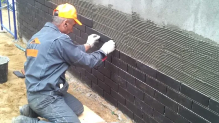 Первый ряд — самый ответственный. Его выкладывают по натянутому шнуру, проверяя каждый миллиметр. Используют специальный кладочный раствор (часто с цветными добавками в тон кирпичу). Каждый кирпич пристукивают, осаживая на место. Обязательна перевязка швов: вертикальный шов следующего ряда не должен совпадать со швом нижнего.