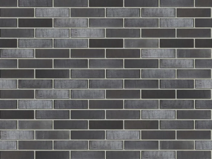 Гладкий кирпич крупного формата. Цвета: все оттенки серого (от светло-пепельного до графита), черный, белый. Кладка максимально ровная, часто с тонким, скрытым швом. Акцент на монолитность плоскости.