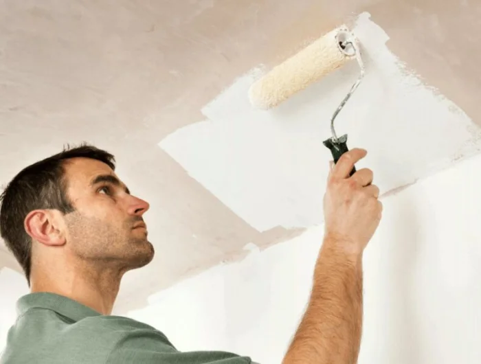 Углы и границы со потолком/полом сначала аккуратно прокрашивайте кистью.