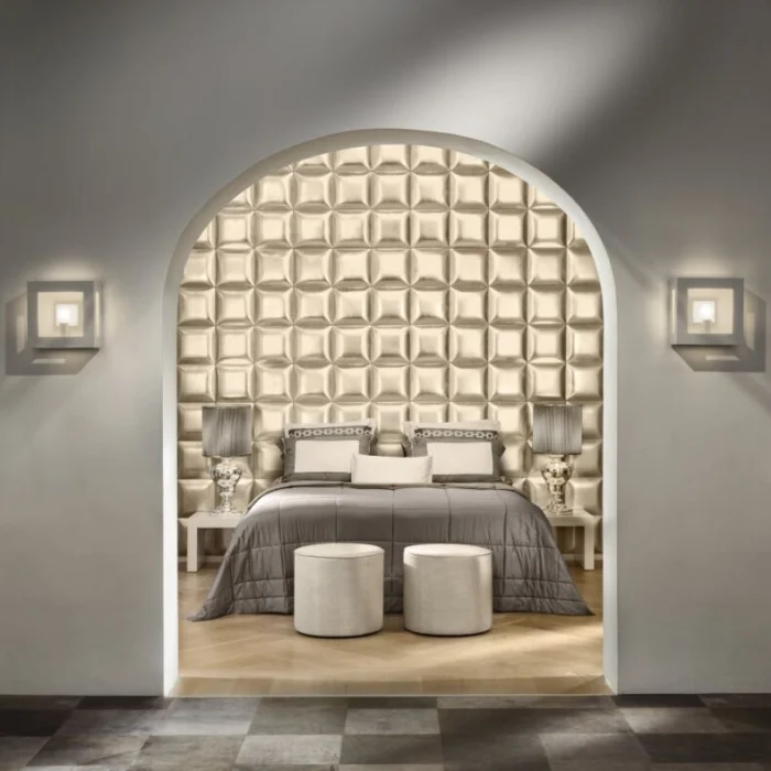 Мягкая контурная подсветка за панелями или точечные светильники в них самих создают невероятно уютную, почти мистическую атмосферу. Идеально для зоны отдыха.