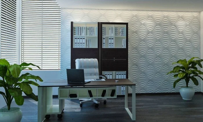 Чаще из МДФ. Глубокий, чёткий рельеф, который выглядит солидно и дорого. Отлично смотрится в кабинетах, библиотеках, столовых.