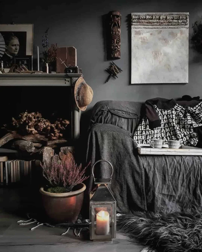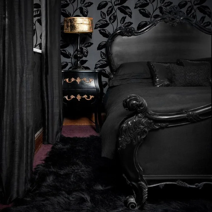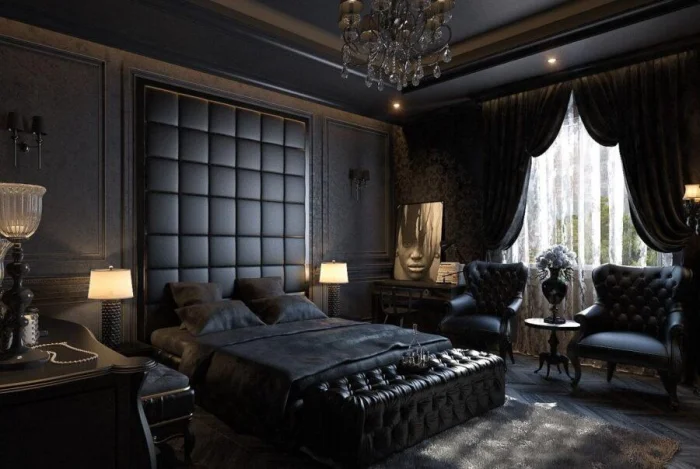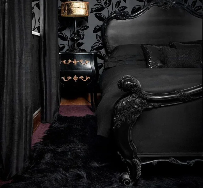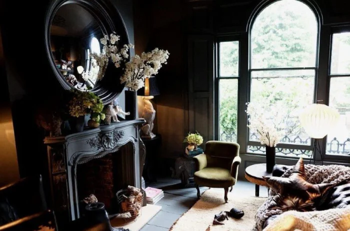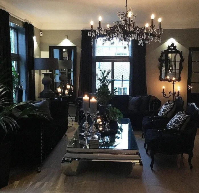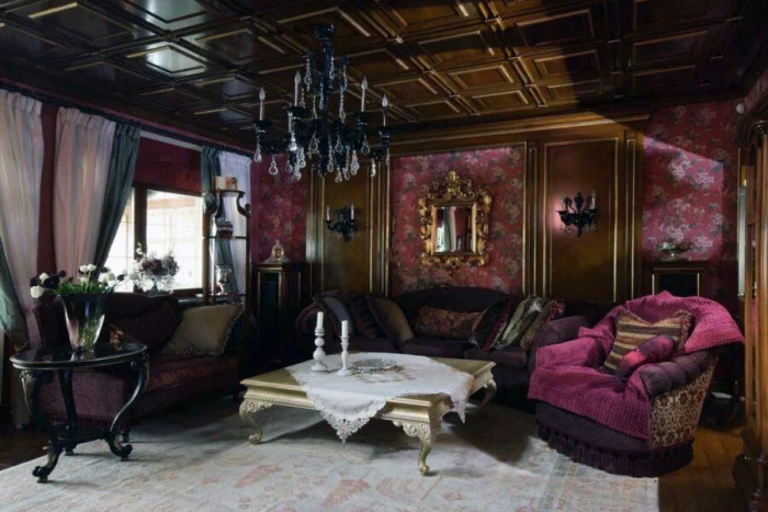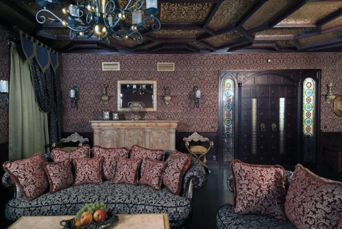 Создать готическую гостиную в хрущёвке почти невозможно. Всё упирается в высоту. Но если потолки позволяют — вперёд! Основу составят несколько выразительных предметов: резной диван, пара кресел с высокими спинками, поставленные по центру. Они станут главными героями на фоне нейтральных, возможно, фактурных стен под камень.