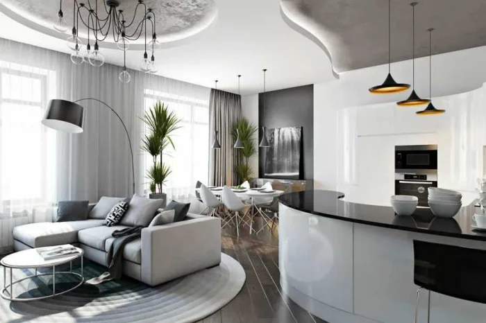 И да, натяжной и подвесной потолок – не одно и то же! Натяжной – это цельное полотно. Подвесной – конструкция из гипсокартона. Часто их комбинируют, создавая сложные многоуровневые композиции со скрытой подсветкой. Зрелище футуристическое.