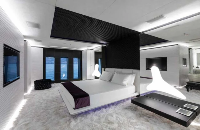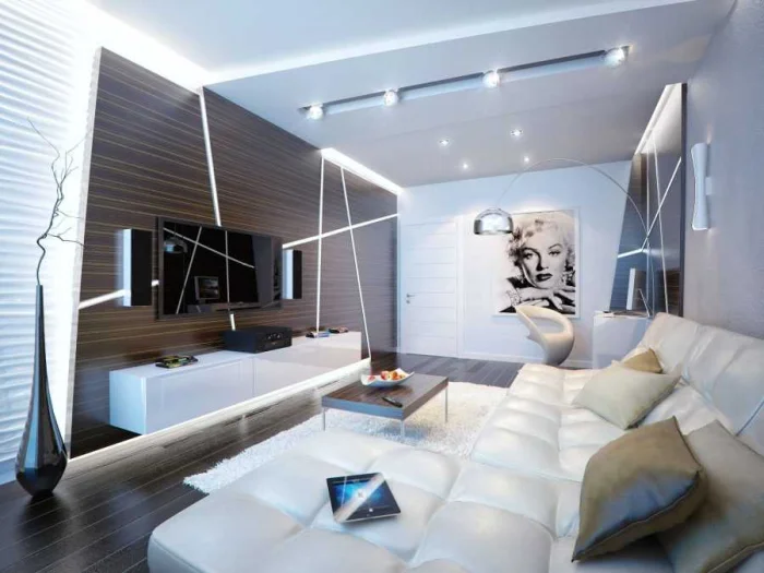 - Скрытые светодиодные панели на стыке стен и потолка.