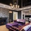- Потолок: натяжной, глянцевый. Он скрывает все коммуникации и работает как зеркало, удваивая пространство.