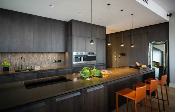 Материалы — это ДНК стиля. Пластик, стекло, хромированная сталь. Дерево допускается только в виде МДФ или ДСП высшего экокласса «E1». Никакого потрёпанного времени «кантри» здесь быть не может.