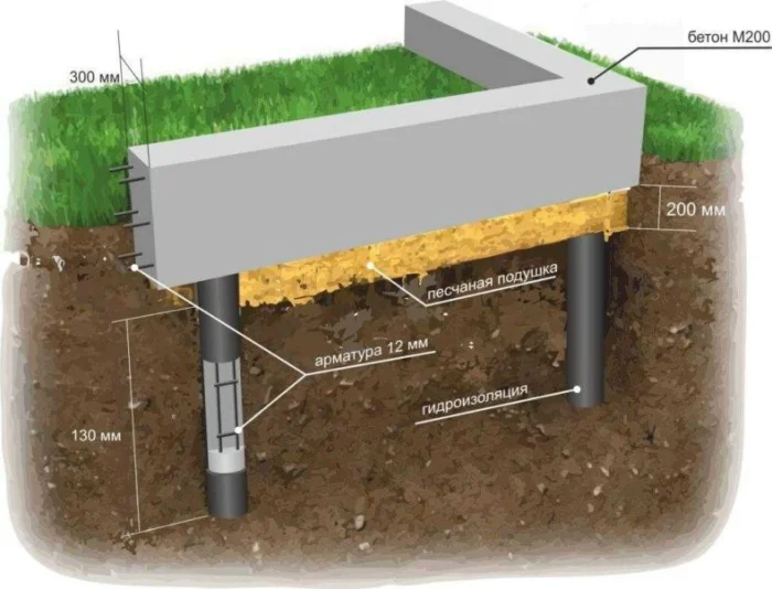 - Расчёт глубины и количества: На какую глубину нужно заглубиться? Сколько всего свай понадобится? Их расставляют под несущими стенами и колоннами с определённым шагом.